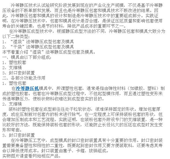 以上由等靜壓機(jī)廠家為您介紹。【山西冷等靜壓機(jī)】成型模具介紹,希望可以幫助到您!